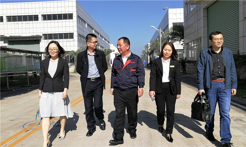 图为工作组与宏泰机电董事长曾琦博士(右三)合影