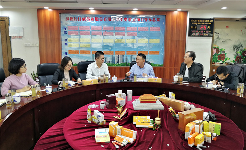 图为工作组与片仔癀董事长刘建顺(右三)合影