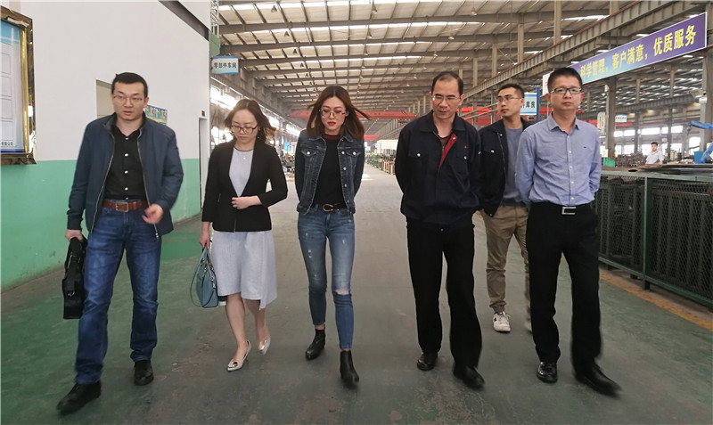图为工作组与新佳美董事长郭佳(左三)等人合影