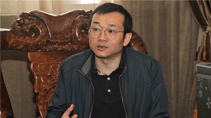 图为多棱新材料总经理王友杰介绍企业发展情况