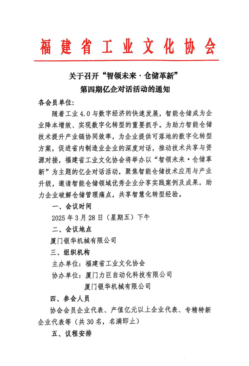 关于召开“智领未来·仓储革新” 第四期亿企对话活动的通知