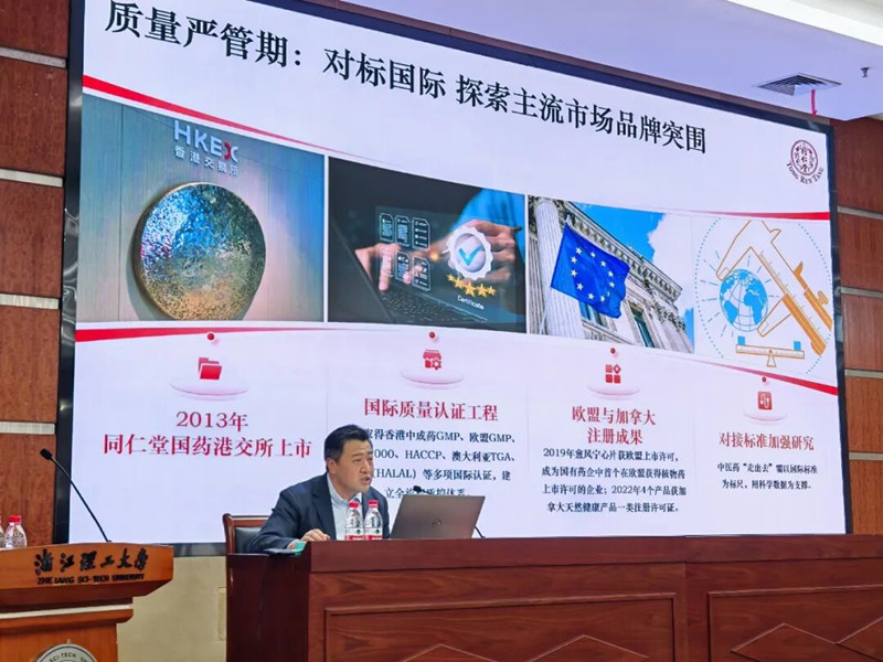 同仁堂集团公司总经理助理严晗分享了同仁堂的国际化发展实践经验。他表示同仁堂国际化历经探索起步、规模增长、质量严管、转型发展四阶段。同仁堂始终坚持以传承古训为根本,以品牌建设为核心,通过构建国际认可的质量标准体系、搭建医药文化交流桥梁、深化科研合作,持续提升中国传统药物国际话语权。针对中医药国际化认知壁垒、监管限制等挑战,他提出推动认知向“科学医疗”转变、合规向“主动对接”升级、模式向“生态共建”转型。未来,同仁堂将布局产品贸易、医疗服务、健康养生三大板块,构建全链条国际化健康服务体系,助力中医药文化全球传播。