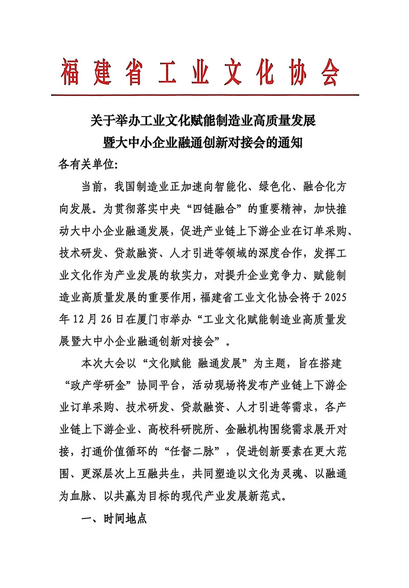 关于举办KY平台赋能制造业高质量发展 暨大中小企业融通创新对接会的通知