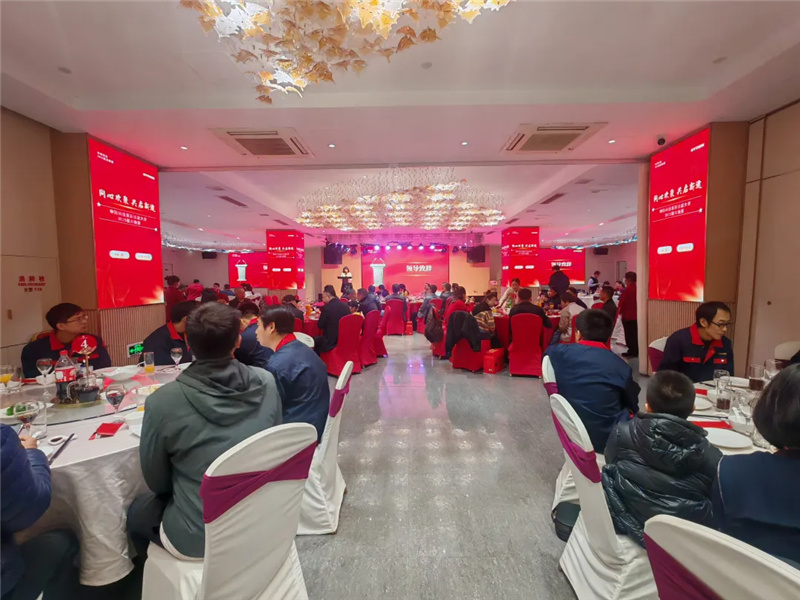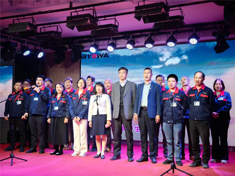 晚宴以技能大赛精彩花絮视频开篇,管理干部一同上台领唱《腾飞吧,昭和》,台下家人齐声合唱,瞬间点燃现场氛围。
